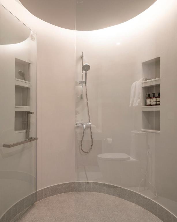 - ⭐最高級的行政套房面積60 m²,由一間帶私人浴缸的臥室、一間起居室和一間浴室組成。套房最特別的是採用更多的設計,像是淋浴間的形狀也很獨特,呈現圓弧形!