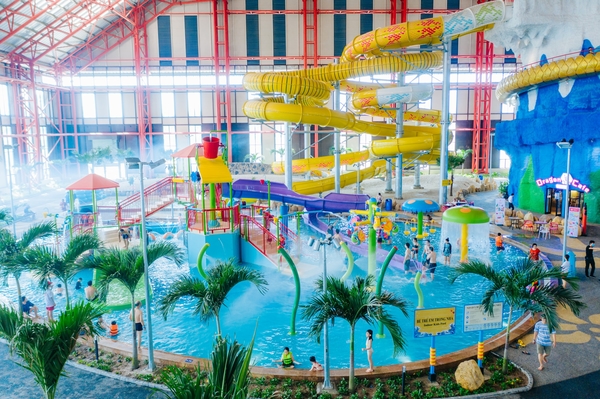 飯店內的水上樂園設施完善,包含流動泳池、人工浪泳池、兒童泳池、及龍形滑水道